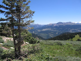 The starting elevation at Coal Bank Pass is about 10,660 feet and it is 2.5 miles and about 1000 feet of elevation gain to a trail junction with the Engineer Mountain Trail. The lower part of the trail climbs through spruce and fir forest and there is a small lake about 1 mile along the way. The trail emerges from the forest into meadow areas with the first view of the pyramid shaped Engineer Mountain at 12,613 feet.